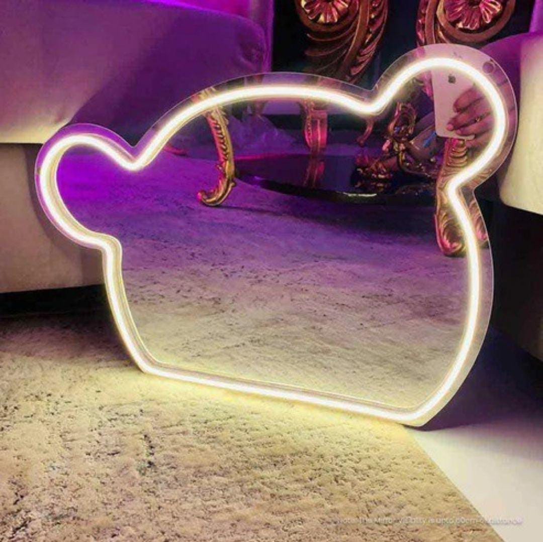 Bear Neon Mirror, Bear Mirror, Custom Neon Sign, Makeup Mirror, Living Room, Kitchen, Washroom, Decor, Bedroom, Bedroom Decor